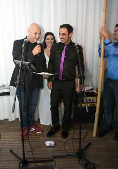 היית תותח אמיתי וקיבלנו פידבקים (לא של סאונד) מדהימים מכל מי שהיה בטקס. אף אחד מעולם לא היה בטקס כזה מרגש, מצחיק ושנון ולכן לא יכל להשאר אדיש. אנשים באו אחד אחד להגיב בהתפעלות. הפכת את הערב שלנו למיוחד - בזכות הייחוד והכישרון שלך ועל זה שלוחות לך תודות ענקיות. מה שבטוח, אתה יכול להוסיף מעריץ גדול שלך נוסף לחבורה שכבר קיימת!